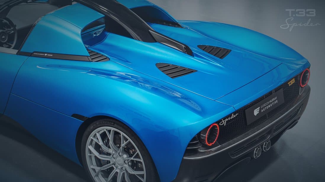 Gordon Murray Automotive is a British manufacturer of exclusive and beautiful lightweight supercars: the new T.33 Spider is our latest creation. Classically designed without the need for unnecessary aerodynamic devices, the T.33 Spider adheres to all of Gordon Murray Automotive’s seven design principles. It’s lightweight, totally driver focused, timeless in style, aerodynamically advanced, practical and very fast. Power comes from the naturally-aspirated, 3.9 litre Cosworth GMA.2 V12, the world’s lightest and most technically advanced road-going V12.